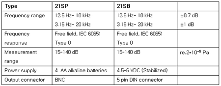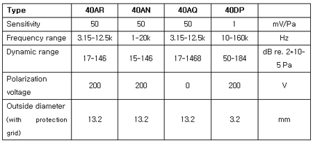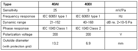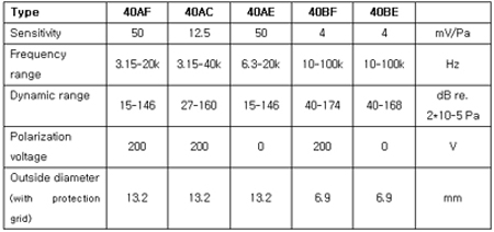 mV/Pa nominal Dynamic range: Upper limit: >174 dB ( re. 2*10-5 Pa) Frequency range: (including corrections) 2 Hz - 20 kHz Electrical Output Impedance: < 50 §Ù Noise (Typical):